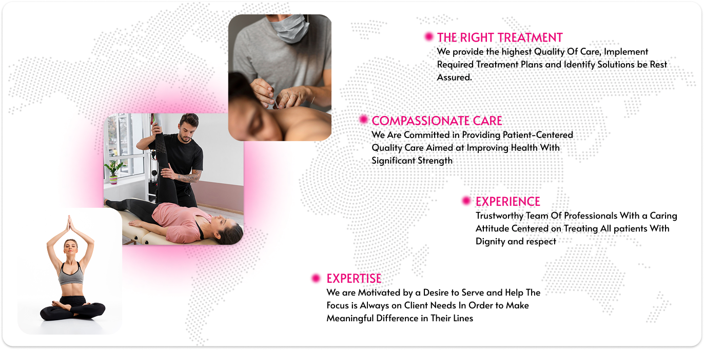 Our dedicated team employs evidence-based treatments grounded in industry research, extensive clinical experience, and a holistic approach. We specialize in Physiotherapy, Chiropractic treatment, Osteopathy treatment, Fascial Manipulation, Dry Needling, Cupping Therapy, Acupuncture, and Stress Management, among others.